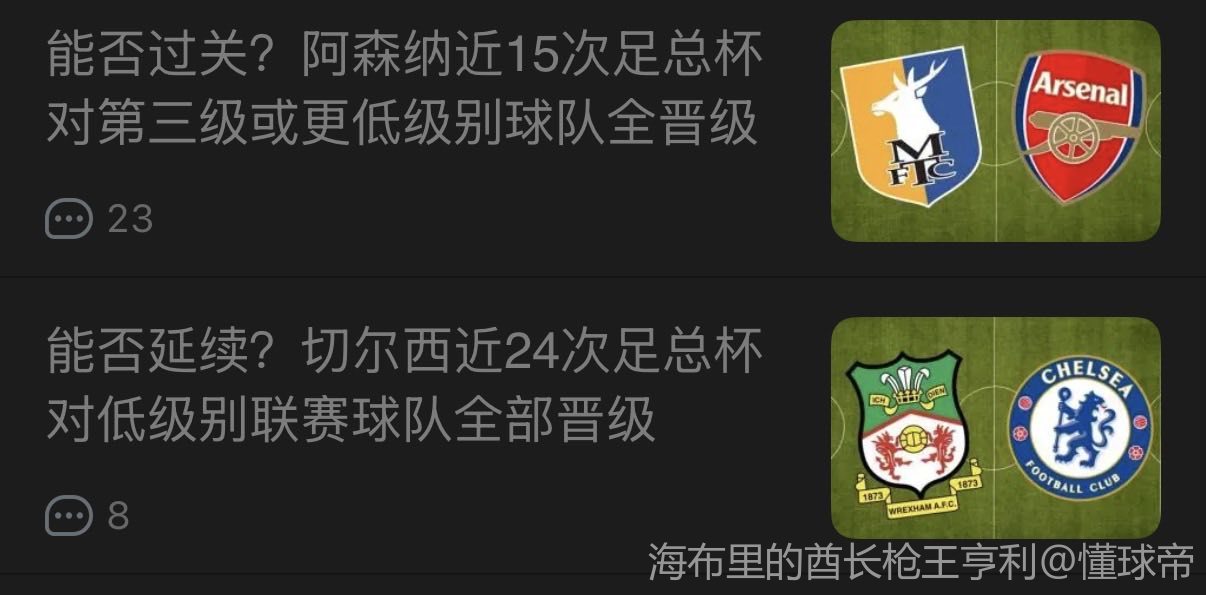 04-05 02:21切尔西连续26次足总杯对低级别球队晋级,仅次于曼联和阿森纳