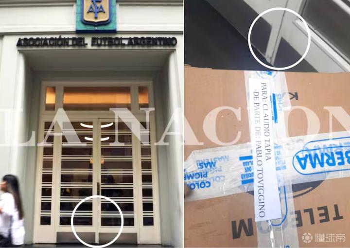 三周后,根据文件显示,盒子被组装完成,上面写着:“收件人:克劳迪奥-塔皮亚;寄件人:帕布洛-托维吉诺”。背景中的黑色地板和白色玻璃门,与阿根廷足协维亚蒙特街的总部一模一样。