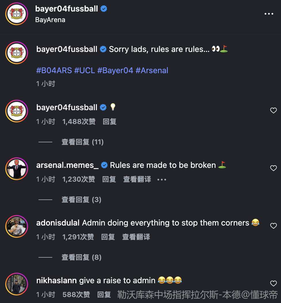 扫描下载懂球帝首页>动态> 摆出禁止罚角球的标识,勒沃库森官媒调侃阿森纳:值得一试啊
