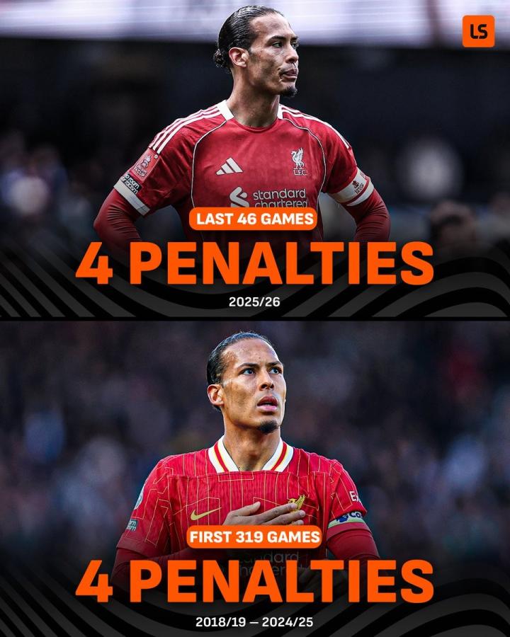 扫描下载懂球帝首页>动态> 范戴克本赛季已送出4次点球,与红军生涯此前7个赛季持平