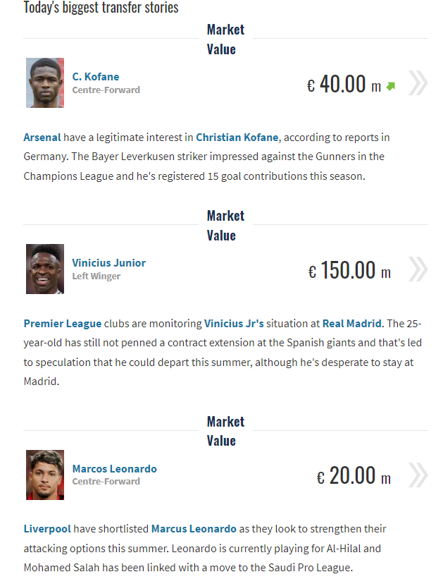 扫描下载懂球帝首页>动态> 懂球号> 德转传闻:阿森纳盯上勒沃库森前锋,英超豪门围观维尼修斯
