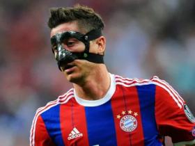 莱万上次戴面具:一点也不好受,影响我观察皮球和对手