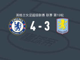 切尔西女足4-3逆转阿斯顿维拉女足,尼斯肯1射1传,劳伦-詹姆斯1传1射