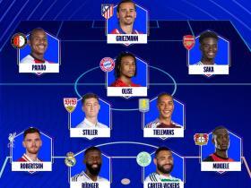 欧冠本周最佳阵:格列兹曼、萨卡、奥利塞、罗伯逊在列