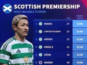 德转列苏超身价榜:前田大然1500万欧元居首,凯尔特人包揽前五