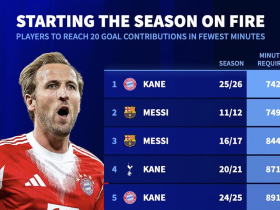 仅用742分钟,凯恩是参与赛季前20球所用时间最少的球员