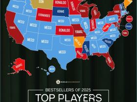 美国各州最受欢迎球衣:梅西断层领先,C罗、亚马尔在列