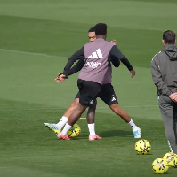 维尼修斯在训练中穿裆阿诺德,引得皇马队友一阵欢呼