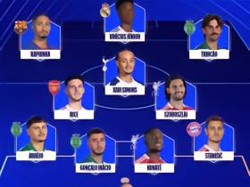 欧冠本周最佳阵容:维尼修斯、拉菲尼亚、索博、赖斯等人在列