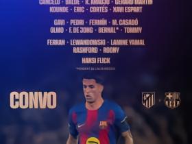 巴萨欧冠客战马竞大名单:莱万、亚马尔领衔,贝尔纳尔在列