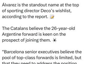 阿尔瓦雷斯与凯恩位列巴萨下赛季锋线引援第一梯队?