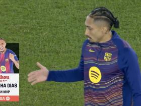 打入一球,拉菲尼亚当选巴萨vs马竞全场最佳球员