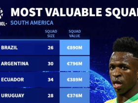 3月国际比赛南美国家队身价前10:巴西、阿根廷、厄瓜多尔前3