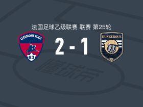 克莱蒙2-1逆转敦刻尔克,迪耶迪乌点射