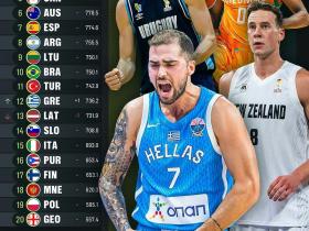 世界男篮实力榜:中国队上升一位来到第26名,位列亚洲第4