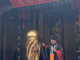 准备卫冕?泰州队在道观求神烧香,并在祈福门口摆放奖杯