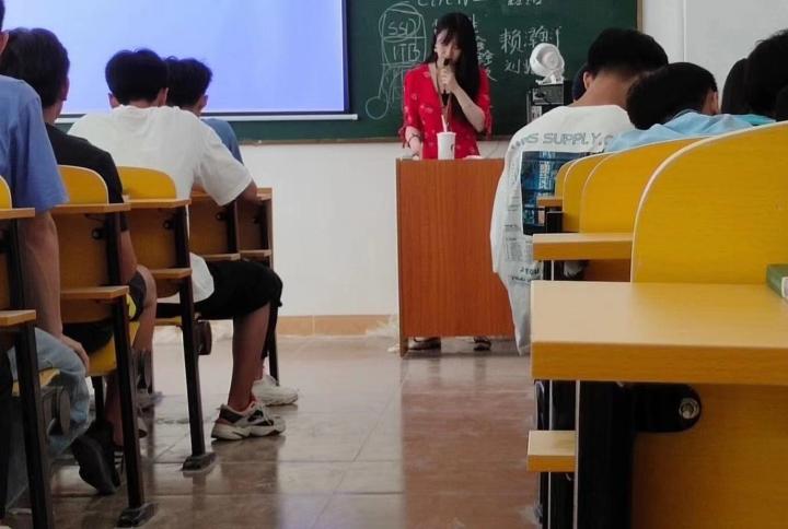 现在的学生都麻木了嘛,这样一位老师站在讲台上,大伙都不看黑板,忙着记笔记嘛