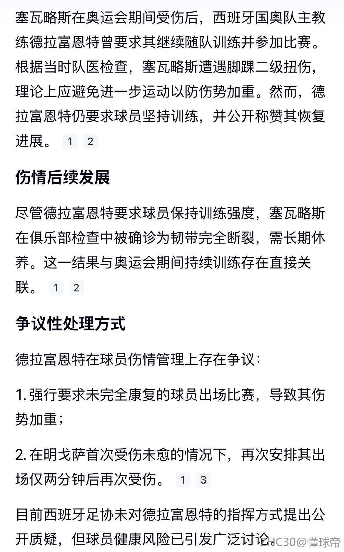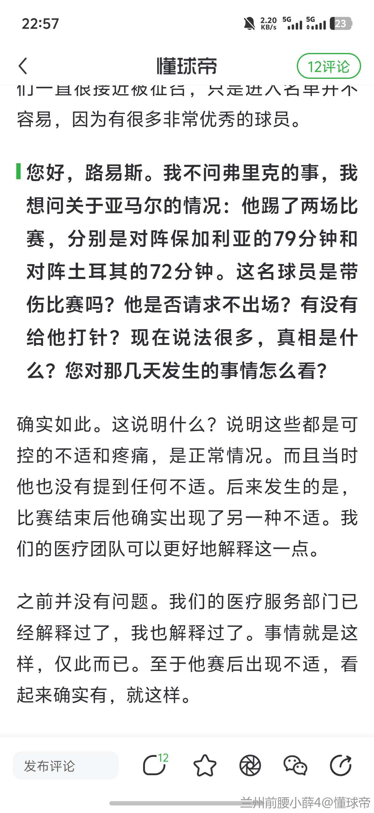 这个医疗问题,医疗团队可以向你解释,医生会说明一切。在法律框架内需要注射什么,都是正常的。因为我们似乎在这里讨论一些……我再说一遍,这些在俱乐部和国家队都是完全正常的情况和操作,绝对正常。细节将由医疗服务部门说明。别让我现在……因为我也读过你的报道,说是静脉注射,现在你又说肌肉注射,这区别很大。