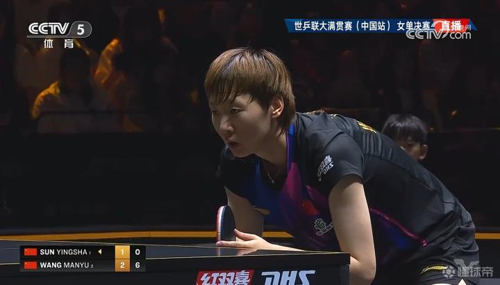 第6局王曼昱在1-2之后连得9分,10-2拿到本场比赛赛点。首个赛点上王曼昱正手斜线顺利兑现赛点,11-2赢下了第6局比赛的胜利。