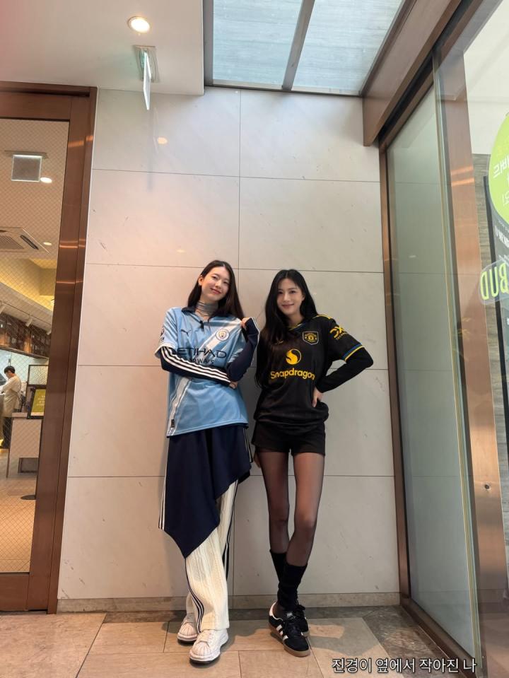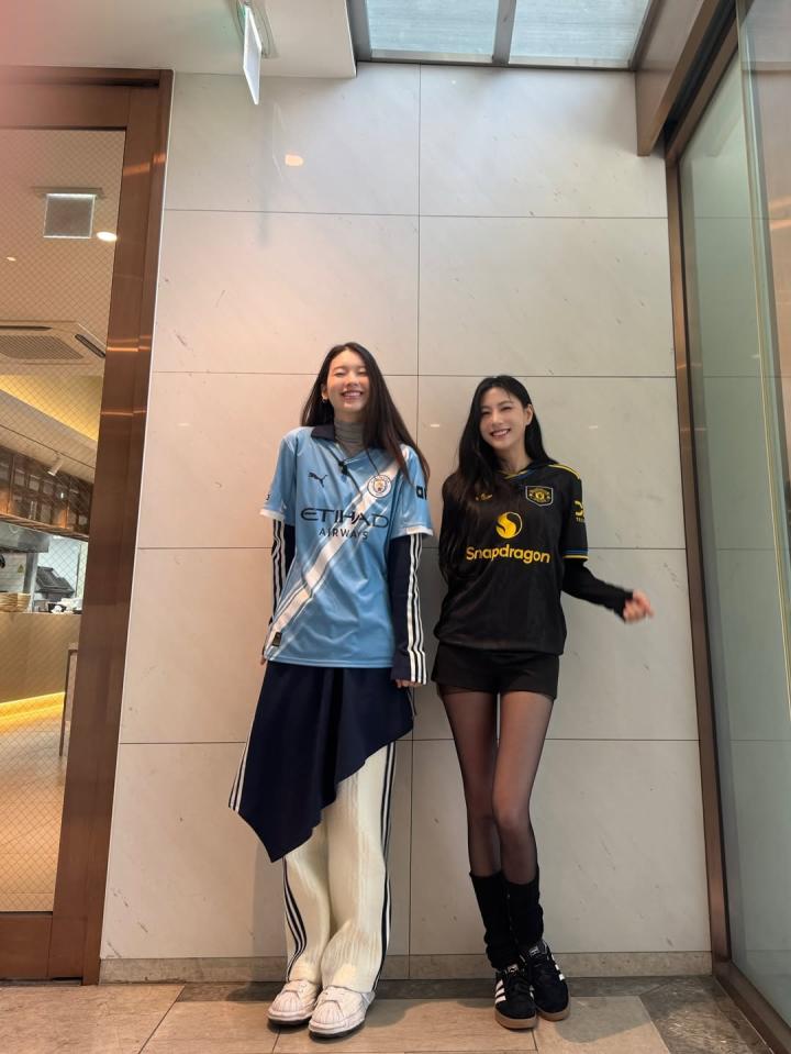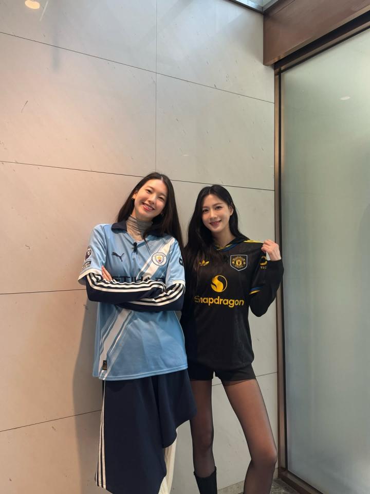 扫描下载懂球帝首页>动态> 懂球号> 韩国女星穿曼联曼城球衣聚餐。左边是韩国国门金承奎...