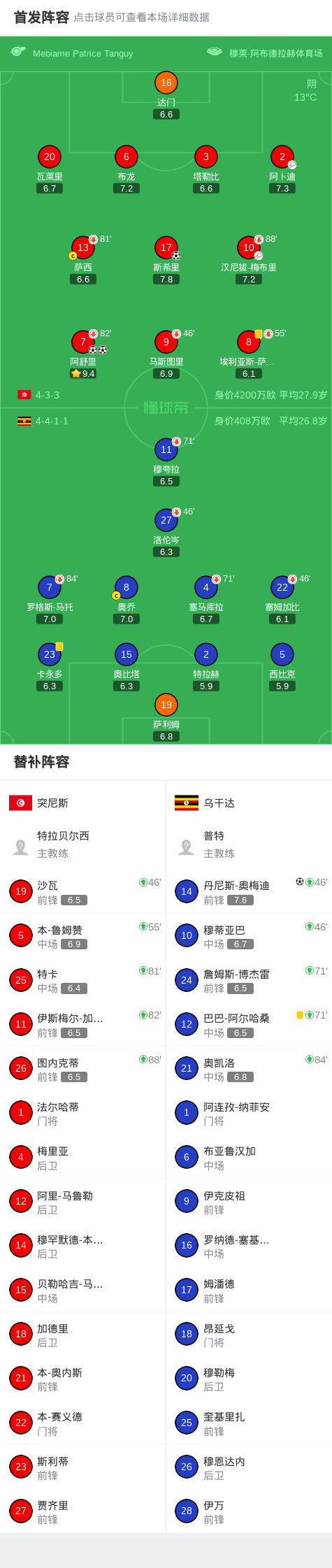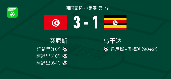 懂球帝首页>动态> 突尼斯3-1乌干达,阿舒里梅开二度,斯希里破门
