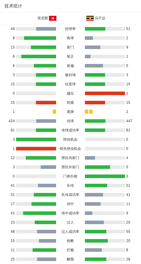 突尼斯 3:1 乌干达1.这是两队第3次在非洲杯正赛交锋,突尼斯全部取胜。2.两队在1978非洲杯同处一组,突尼斯3:1力克乌干达,但两队都小组出线。3.在5场两队的交锋中,突尼斯的进失球比为19:2。4.乌干达球员穆蒂亚巴在突尼斯球队斯法克西恩效力,他和突尼斯的艾曼·达门和马鲁勒是队友。5.这是突尼斯第22次、连续第17次晋级非洲杯正赛,上一次缺席还是1992年。6.突尼斯在2004年夺得非洲杯冠军,在1965年和1996年屈居亚军,在初次参赛的1962年夺得季军。7.突尼斯在2023非洲杯以2平1负的战绩小组出局,这是他们自2010非洲杯以来,首次在单届非洲杯正赛0胜。8.突尼斯终结了连续5场非洲杯揭幕战不胜(2平3负),上次取胜是2013年1:0击败阿尔及利亚。9.突尼斯最近7场非洲杯正赛取得2胜(另外5场2平3负)。10.突尼斯最近10场非洲杯小组赛取得2胜(另外8场5平3负)。11.突尼斯主教练特拉贝尔西作为球员参加了4届非洲杯(1994、1996、1998和2000),其中在1996年获得亚军。12.这是特拉贝尔西第3次率领突尼斯晋级非洲杯正赛,此前分别在2012年晋级8强,2013年小组出局。13.在特拉贝尔西治下,突尼斯的3场非洲杯揭幕战全部取胜。14.乌干达第8次晋级非洲杯正赛,也是自2019年以来的首次。15.乌干达在1978年创造队史非洲杯最佳战绩,在决赛中他们0:2负于加纳。16.乌干达在8场非洲杯揭幕战中输了6场。17.乌干达最近9场非洲杯正赛输了6场(另外3场1胜2平)。18.乌干达的24场非洲杯正赛比赛都出现了进球。19.乌干达只有2次在非洲杯小组出线,分别是1978年和2019年。20.乌干达主教练保罗·普特第4次率队晋级非洲杯正赛,此前2次率领布基纳法索(2013年亚军、2015年小组出局),1次率领几内亚(2019年16强)。21.在保罗·普特执教生涯中,从未取得非洲杯揭幕战的胜利(2平2负)。