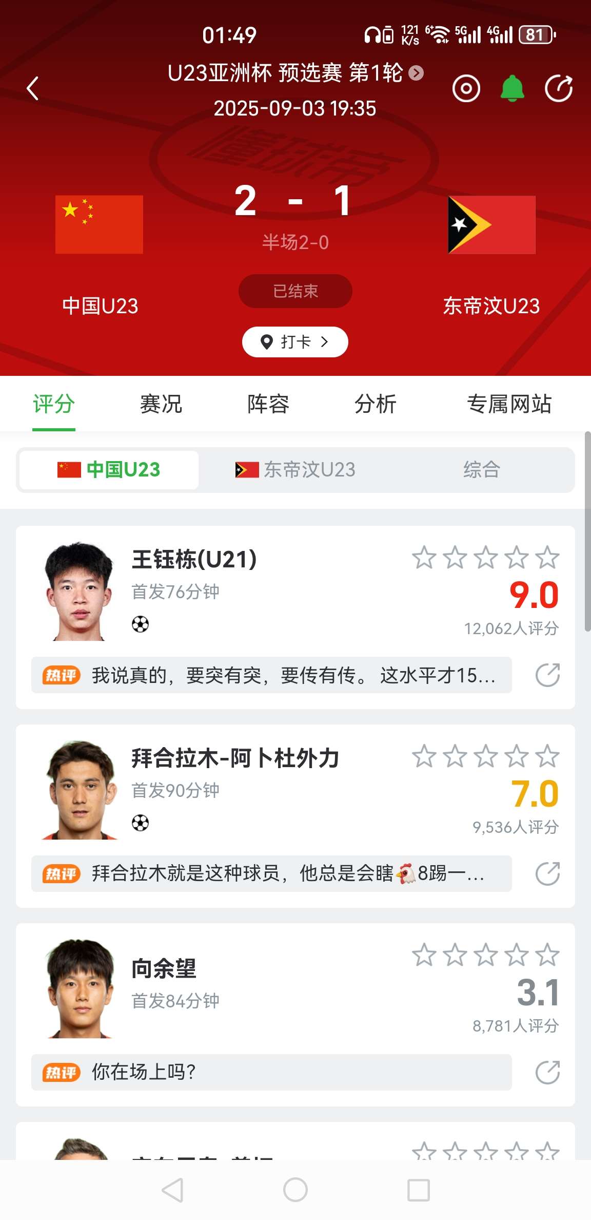 说句挨喷的话,希望决赛还是向余望和老蒯首发,王钰栋和拜合拉木打日本绝对没有向和蒯管用。