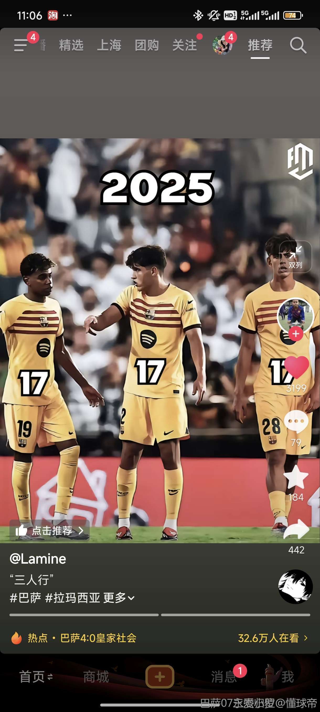 07三杰今天同在场上,亚马尔和贝尔纳尔各进一球,库巴西防守严密,拉玛西亚新一代已经在展现他们的能力!加油小伙子们!