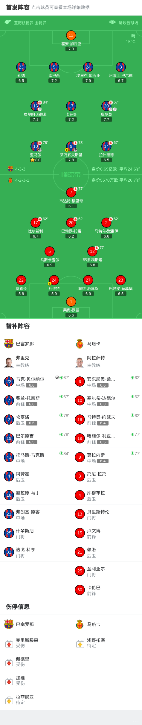 扫描下载懂球帝首页>动态> 剑南春丨巴萨3-0马略卡,亚马尔世界波,莱万、贝尔纳尔破门