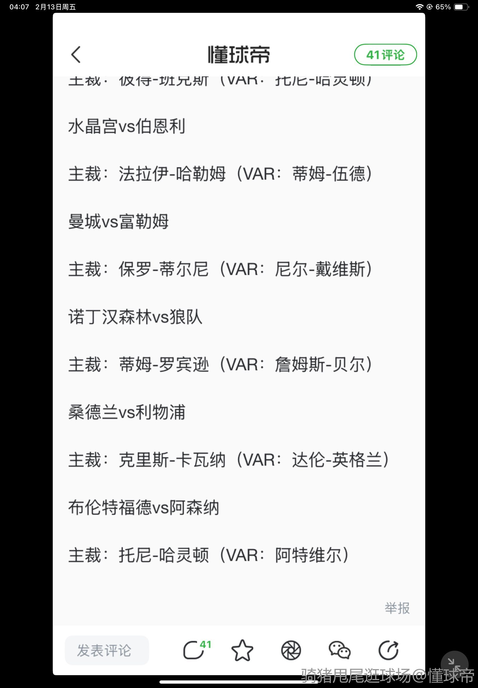 某些球迷别太狠了 开场客场哨偏的那么狠 得了便宜还卖乖 自己失误多球员动作多踢的不好不如说 就会拿裁判说事了?!