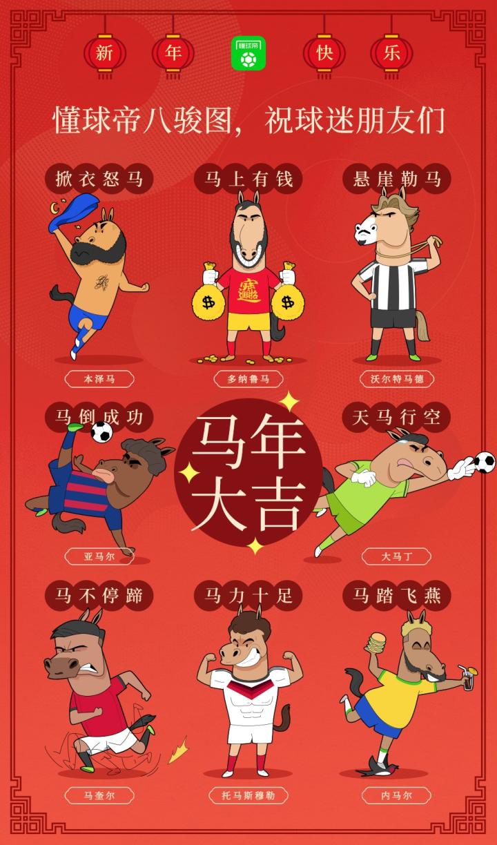 扫描下载懂球帝首页>动态> 懂球号> 懂球帝《八骏图》祝球迷朋友们新春快乐,马年大吉!
