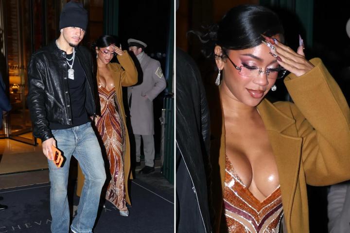 近日,桑乔与女友萨维蒂在巴黎现身,两人手牵手走过红毯,造型吸睛。桑乔头戴黑色针织帽,身穿皮夹克搭配黑色T恤和牛仔裤,整体风格低调。32岁的萨维蒂则身披棕色外套,内搭低胸马赛克连衣裙,成为现场焦点。