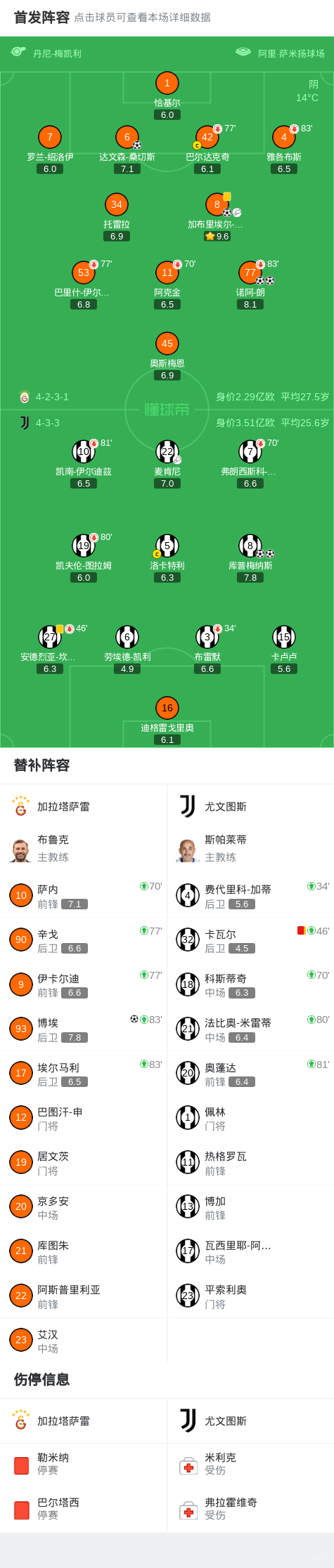 02-18 04:53一射一传+创造7次机会,萨拉当选加拉塔萨雷5-2尤文全场最佳