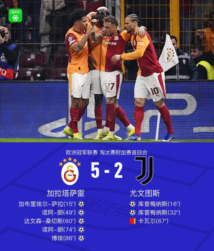 02-17 23:192-5惨败加拉塔萨雷,尤文队史第二次欧战单场丢至少5球