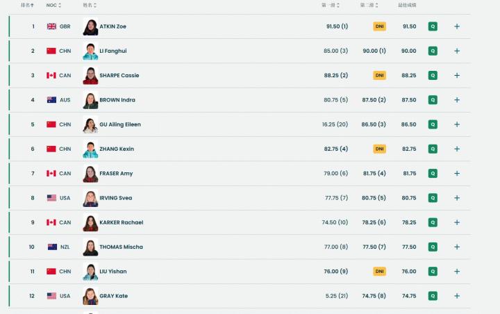 最终,谷爱凌、李方慧、刘奕杉和张可欣4人都成功晋级到2月22日的决赛。