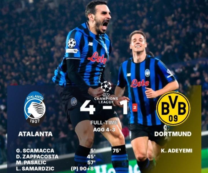 02-25 23:18开场5分钟攻破多特球门,斯卡马卡打进亚特兰大欧冠第二快进球