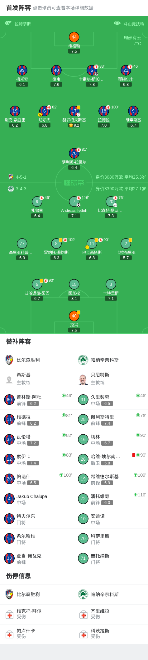 第105分钟,帕纳辛奈科斯球队哈维-埃尔南德斯吃到红牌。