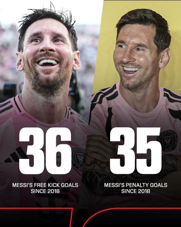 梅西打进职业生涯第70粒直接任意球,距儒尼尼奥纪录还差7球