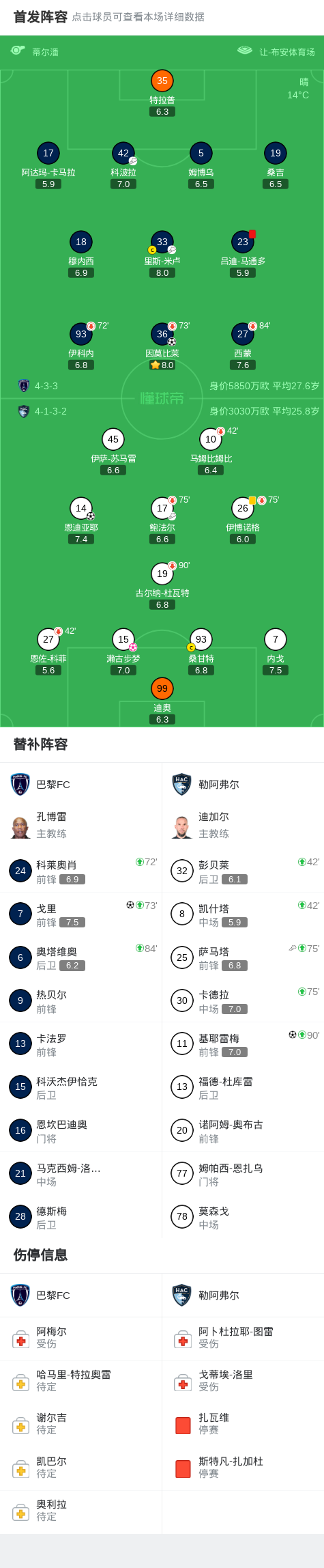 下半场补时第2分钟,勒阿弗尔球员萨马塔助攻基耶雷梅打入一球。