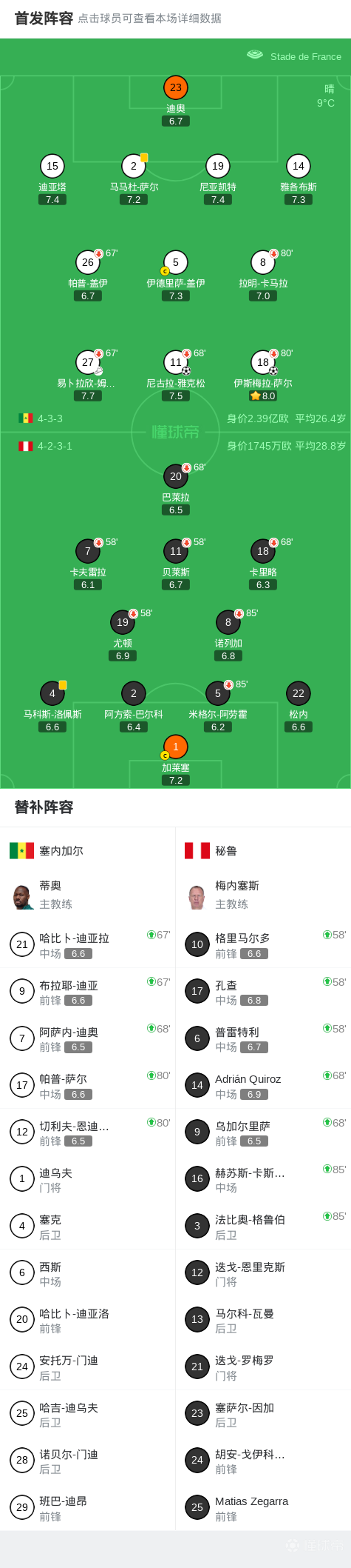 03-29 00:01半场:塞内加尔1-0秘鲁,雅克松破门建功