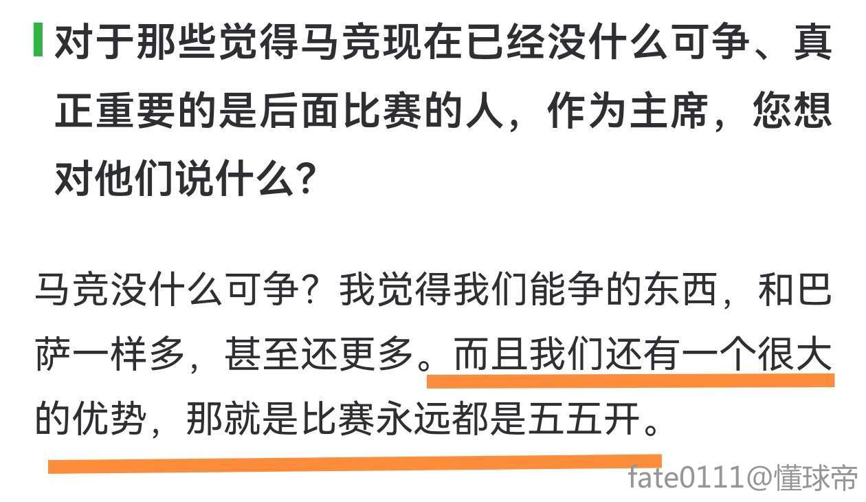 马竞没什么可争?我觉得我们能争的东西,和巴萨一样多,甚至还更多。而且我们还有一个很大的优势,那就是比赛永远都是五五开。