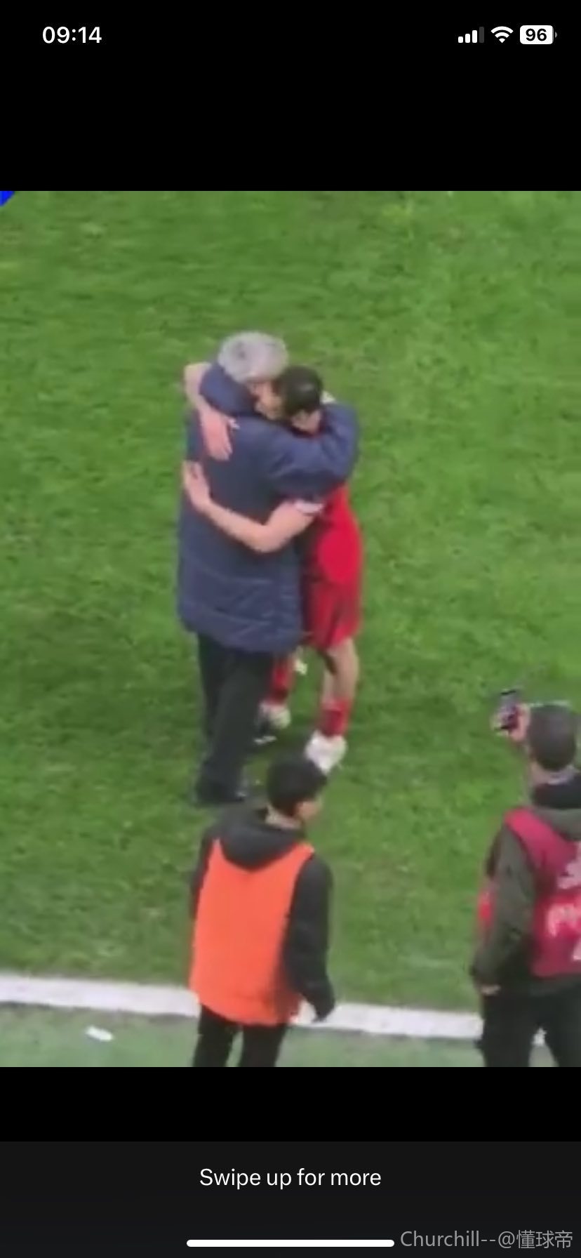 比赛结束后,卢塞斯库与土耳其队长恰尔汗奥卢在场边拥抱了很久…