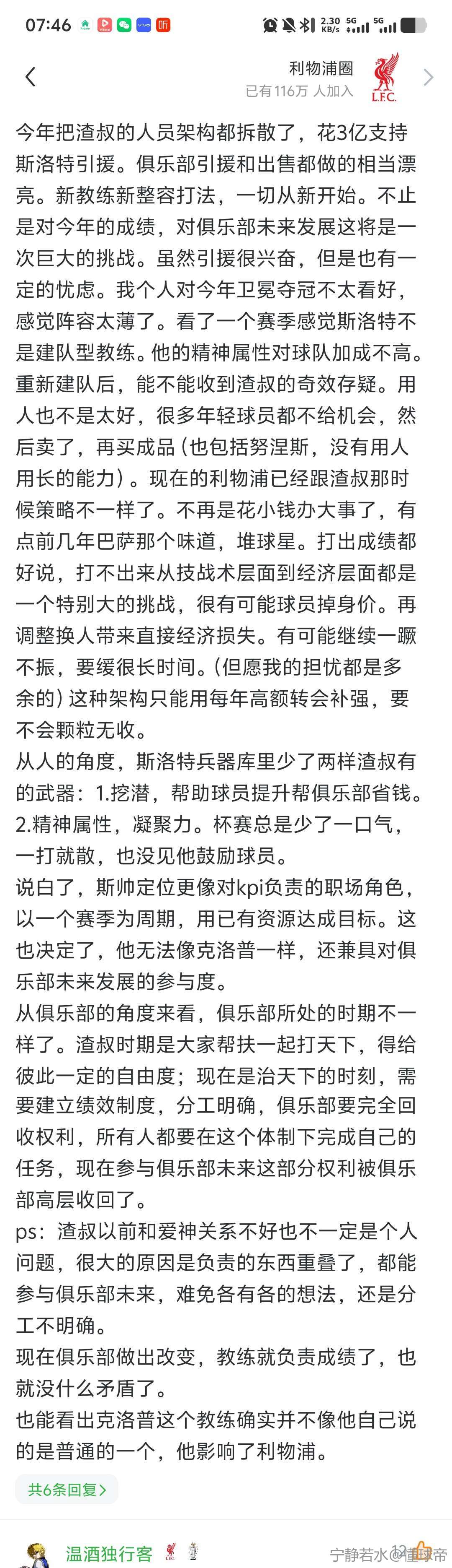 赛季初的评价了,看到现在都应验了,其实怀念的是当初利物浦比分落后比赛才刚开始的那份骨气,现在都没了。现在是教练一个人赛后找借口。快一个赛季了这战术体系是一点希望都看不出来,引援都是重复位置。边锋和中后卫新赛季抓紧补补吧。如果可以换个教练吧,说上赛季你没吃渣叔遗产,我是一点不信,你争点气拿出点像样的战术来,你老说球员没踢出你想要的,帮他们进步不就是你该干的嘛。还有都说加克波是你亲儿子,我看你想害死他,渣叔时期没人骂的人,现在快让您改造成一根筋和程序化了,你不能劝劝他啊,赛后不看比赛录像分析一下吗?这样踢转化率多低啊?可能也是没有分析比赛的习惯啦。您要不来我们电子厂当主管吧,我们这里就缺能把人管成这样的主管,没点程序化的员工在厂里干不长,厂长绝对给你升职加薪。