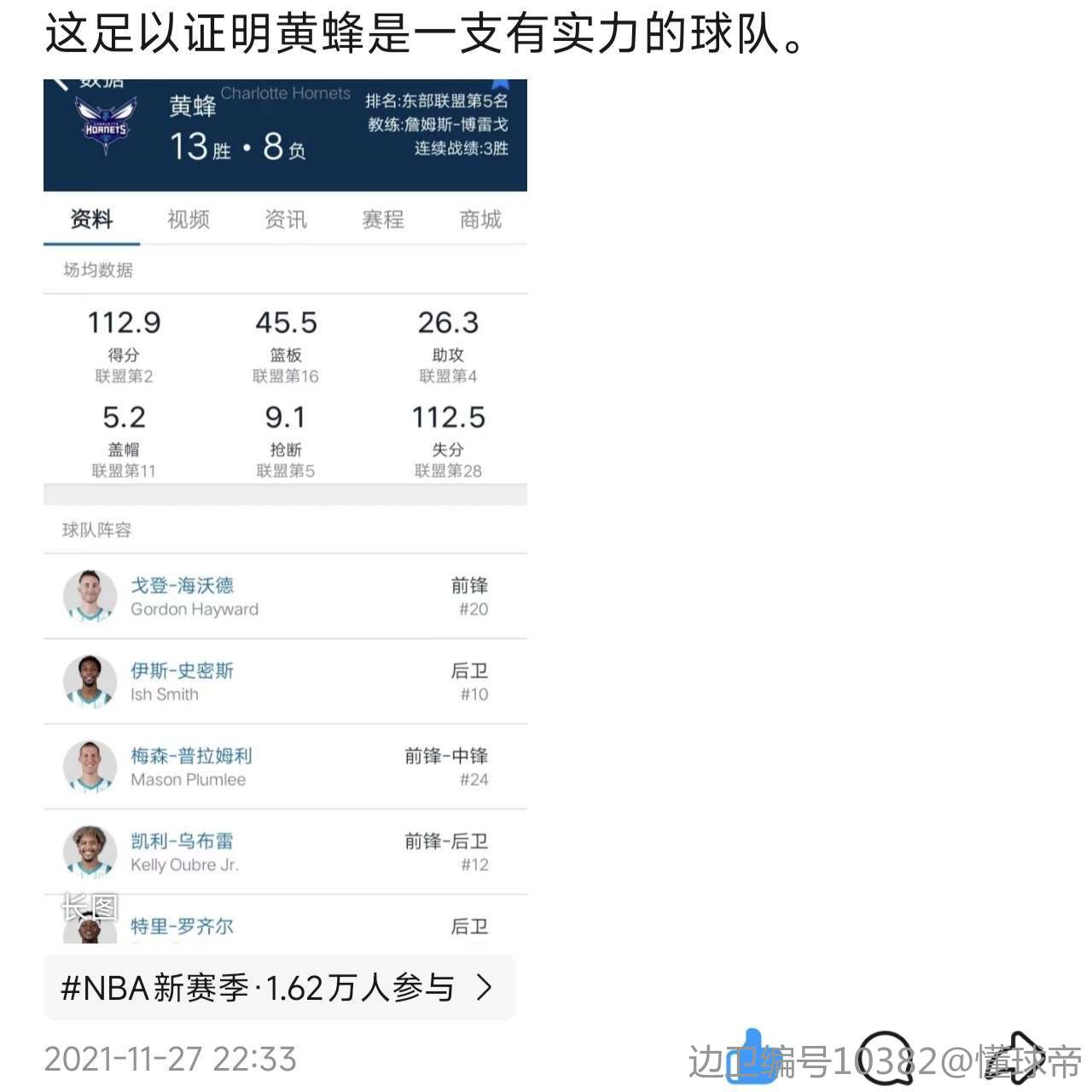 三球上半场太浪了,黄蜂可以考虑把他交易掉了。
