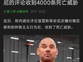斯内德:我因为对普雷斯蒂安尼的评论收到4000条死亡威胁