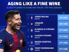 37岁80天,莱万是西甲历史上演帽子戏法第四年长的球员