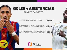 莱万对阵皇马已打入12球,本世纪仅次于梅西