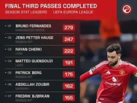 279次,B费是本赛季欧联杯传球进入进攻三区最多的球员