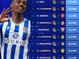 皇社离队转会费榜:伊萨克7000万欧居首,苏比门迪有望成第二