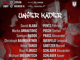 奥地利大名单:阿拉巴领衔,萨比策、莱默尔、阿瑙、丹索入选